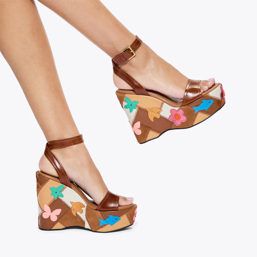 Sandalia plataforma de cuña con diseño de retazos